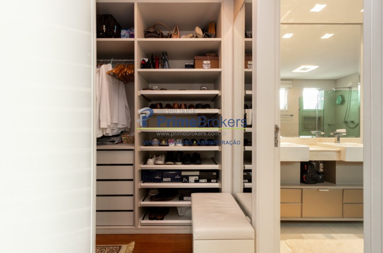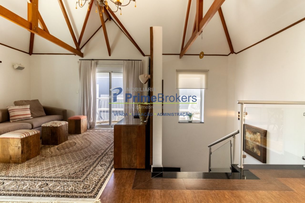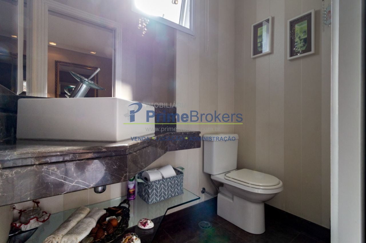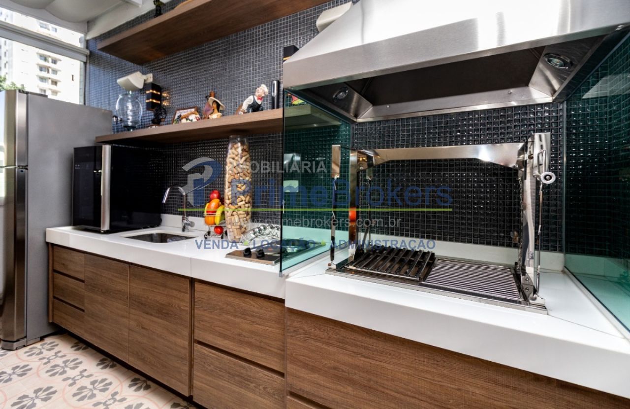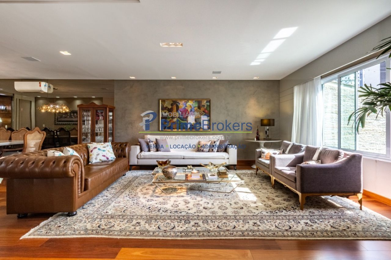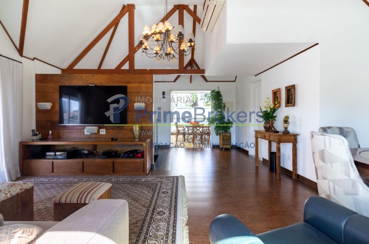 2 suítes master com hidromassagem, espaço gourmet com jacuzzi e churrasqueira, sala cinema, sala de TV com varanda, ofurô, 4 vagas de garagem, 5 banheiros, ar-condicionado, móveis planejados, mobiliado, alarme, água quente, piso de madeira, sacada, copa, depósito, infraestrutura para ar-condicionado, interfone, banheiro de serviço