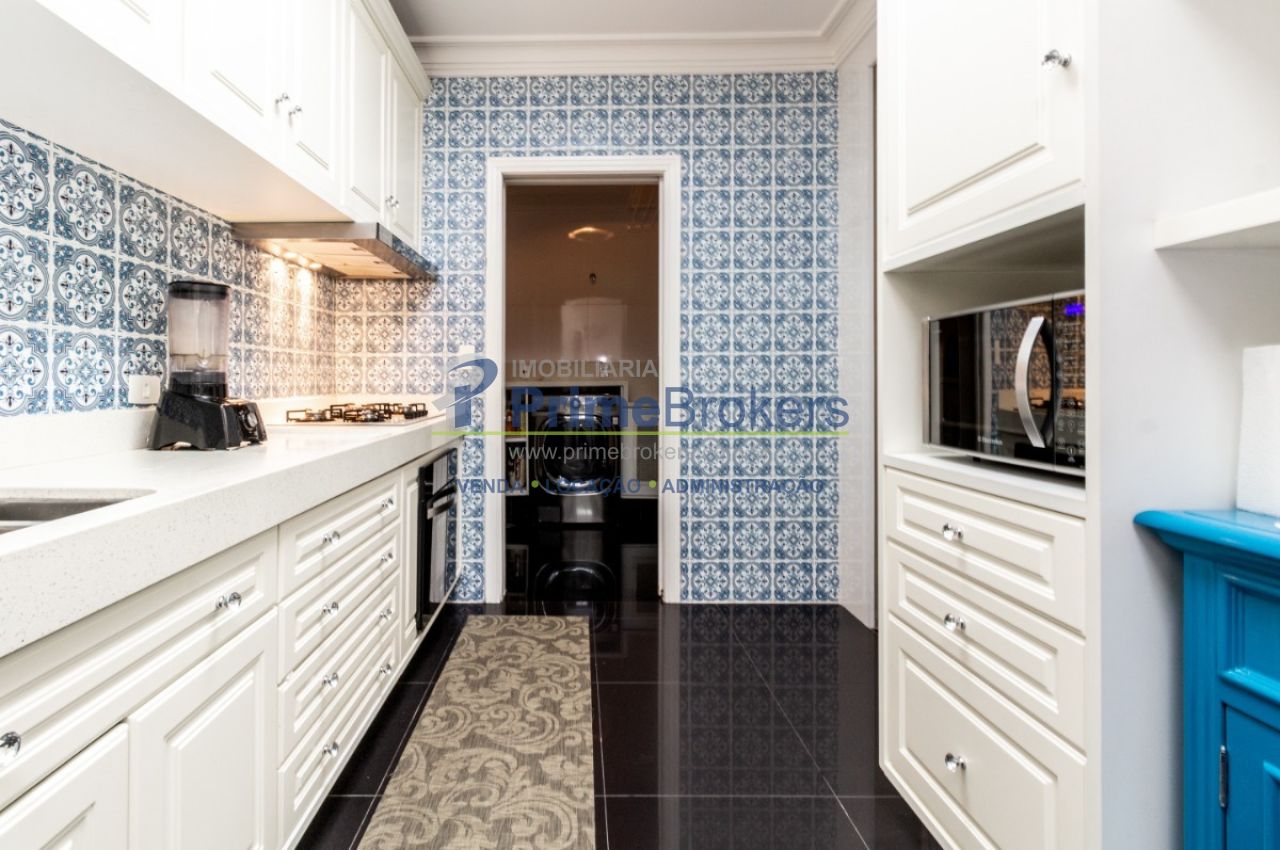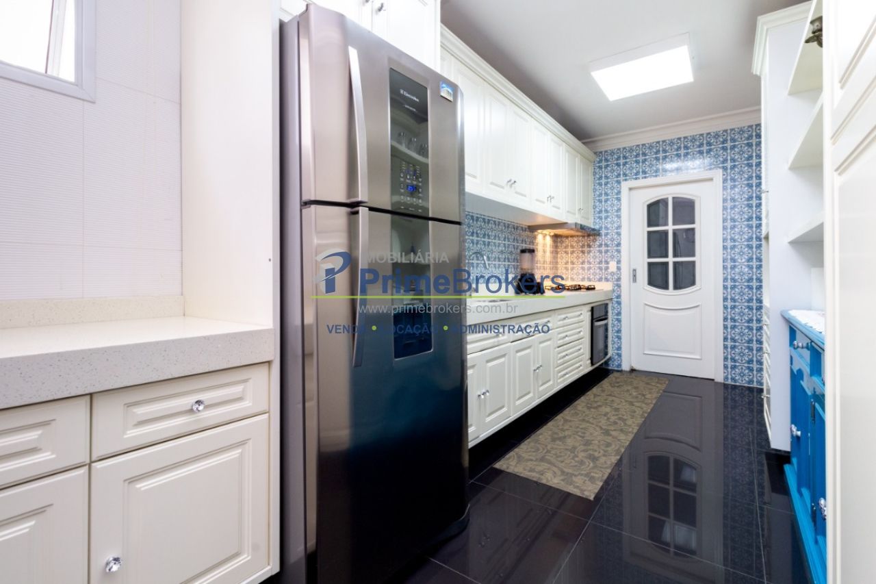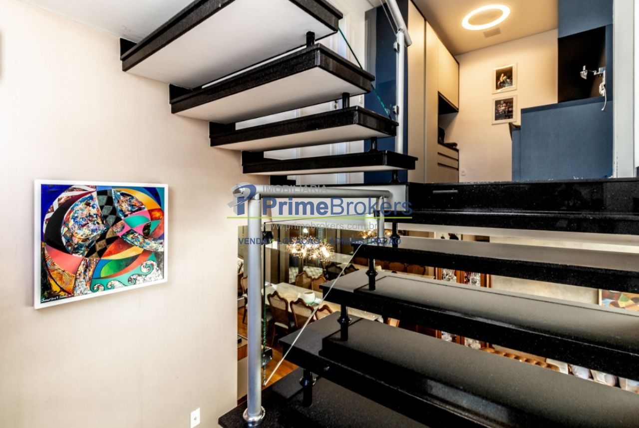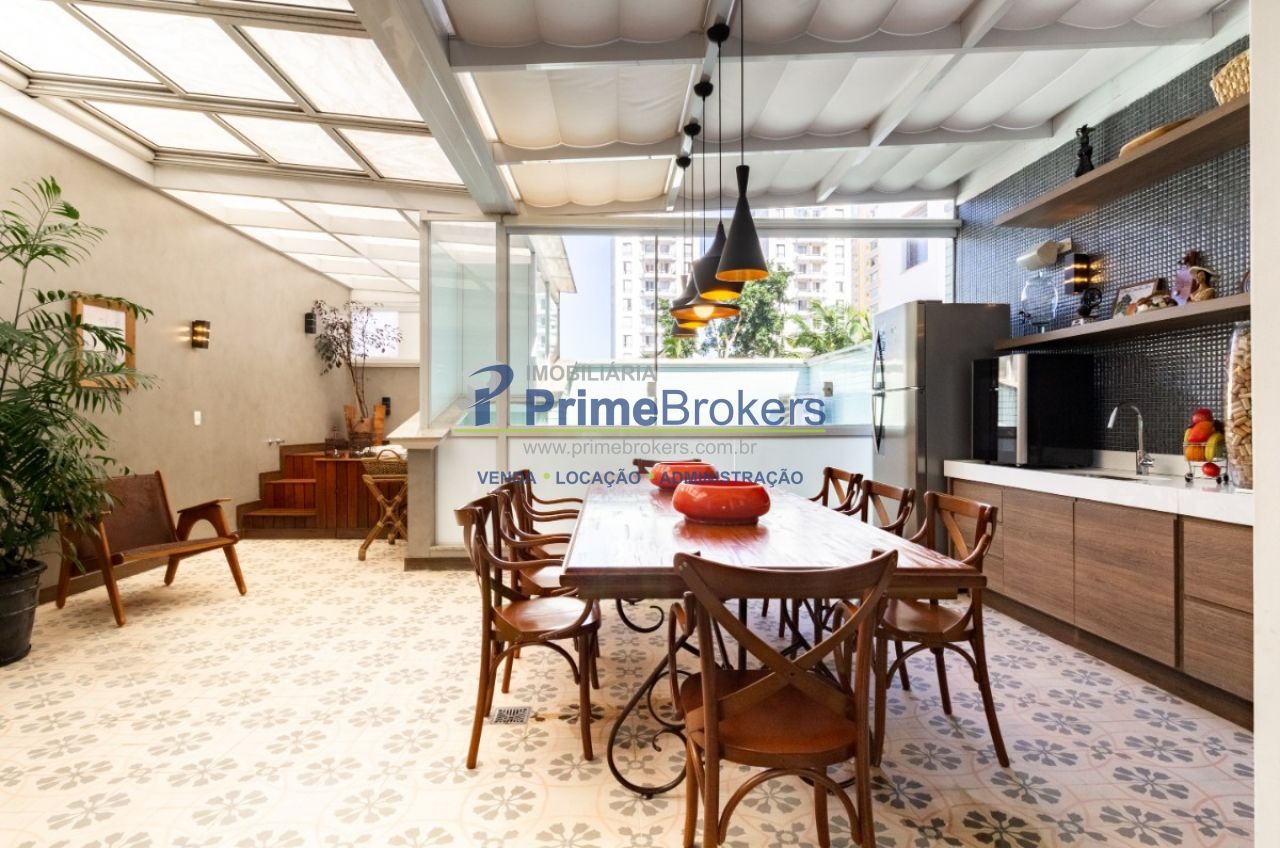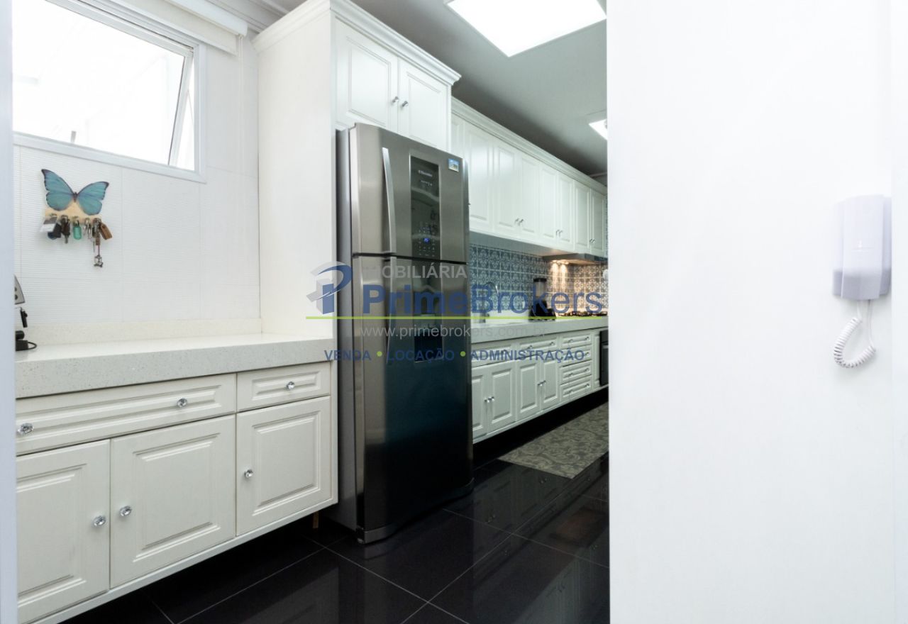 2 suítes master com hidromassagem, espaço gourmet com jacuzzi e churrasqueira, sala cinema, sala de TV com varanda, ofurô, 4 vagas de garagem, 5 banheiros, ar-condicionado, móveis planejados, mobiliado, alarme, água quente, piso de madeira, sacada, copa, depósito, infraestrutura para ar-condicionado, interfone, banheiro de serviço