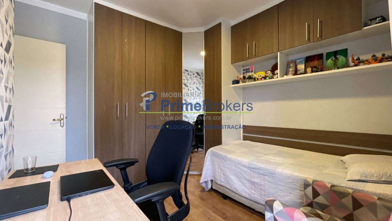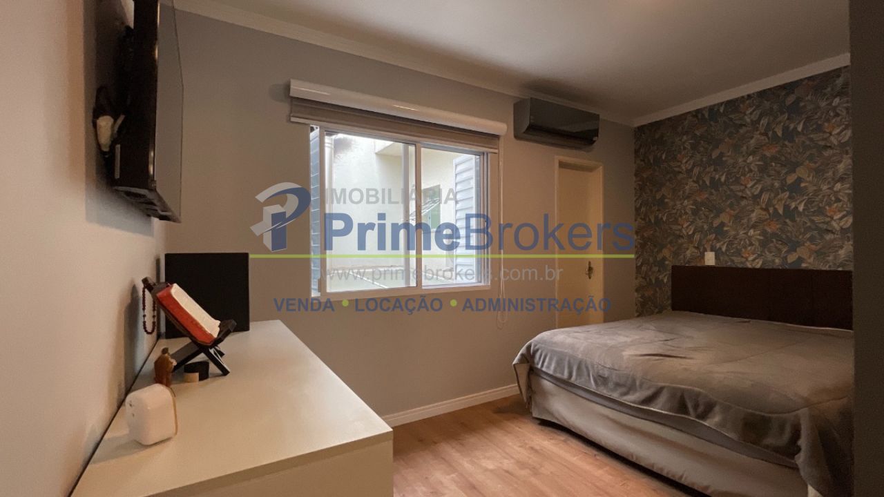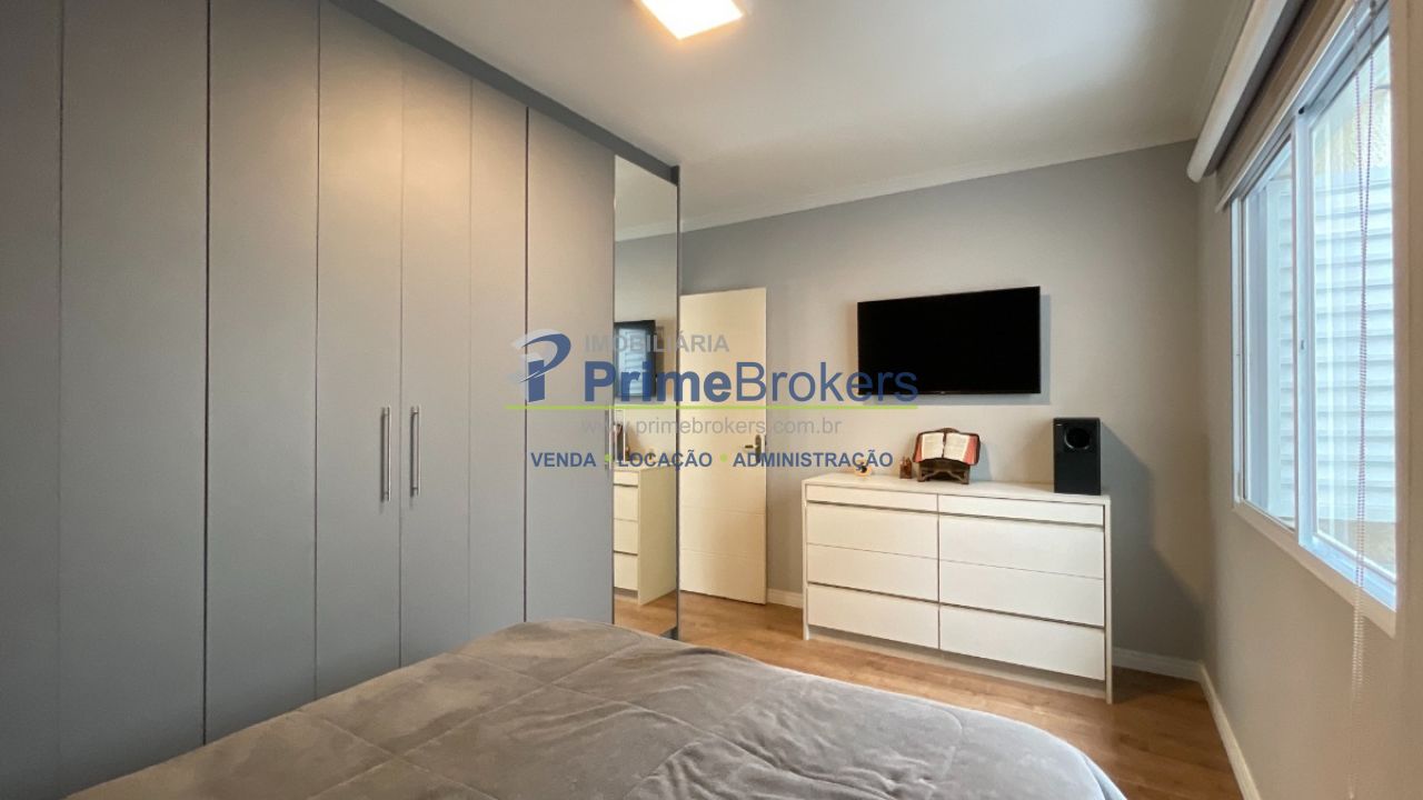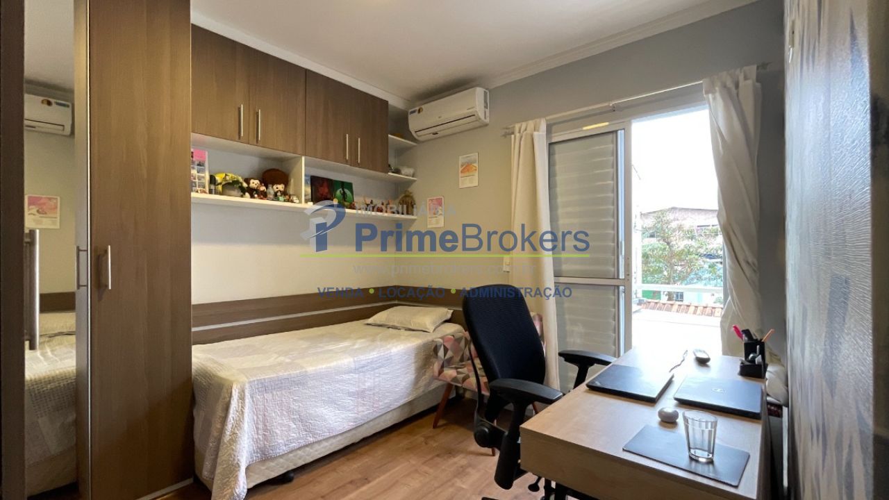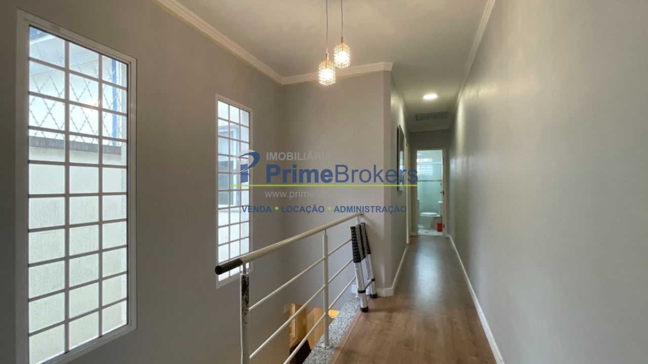 O piso superior é exclusivo para a área intima do imóvel, com 3 dormitórios, incluindo 1 suíte com ar condicionado, banheiro social que serve os outros dois dormitórios, um deles com ar condicionado, corredor de distribuição amplo, todos os ambientes banhados por muita luz e a marcenaria planejada nos dormitórios e banheiros, além do conforto do piso laminado nos ambientes secos.