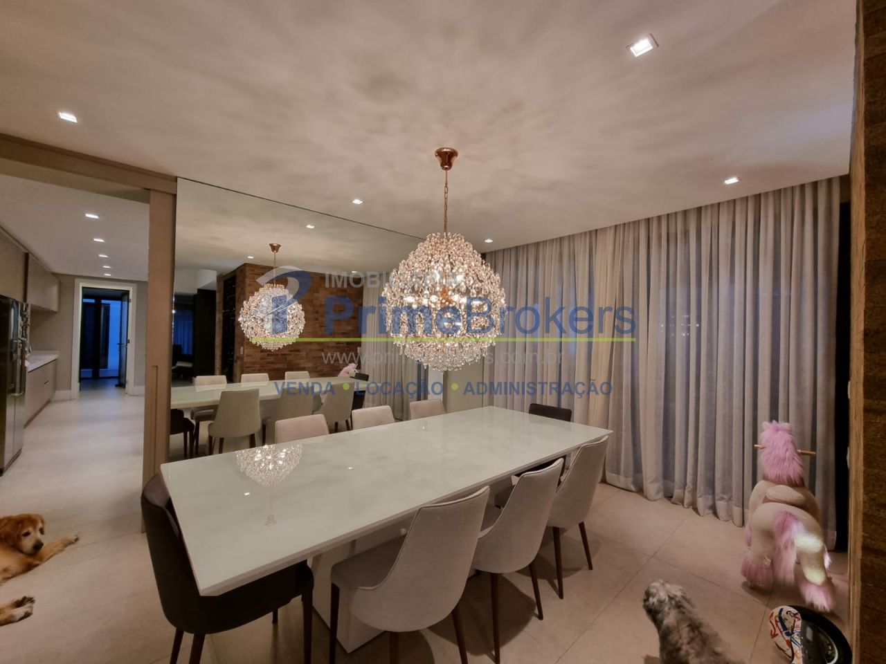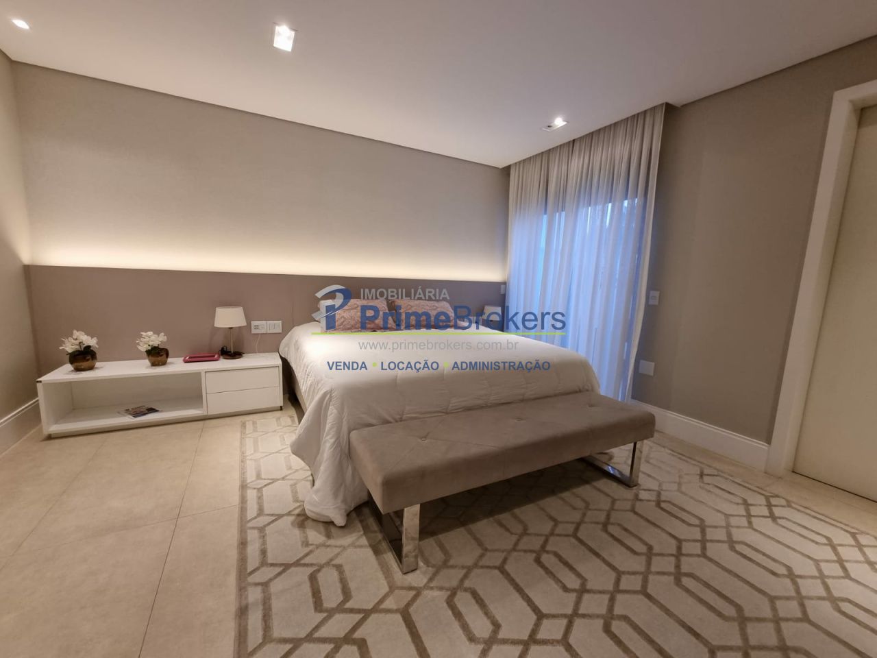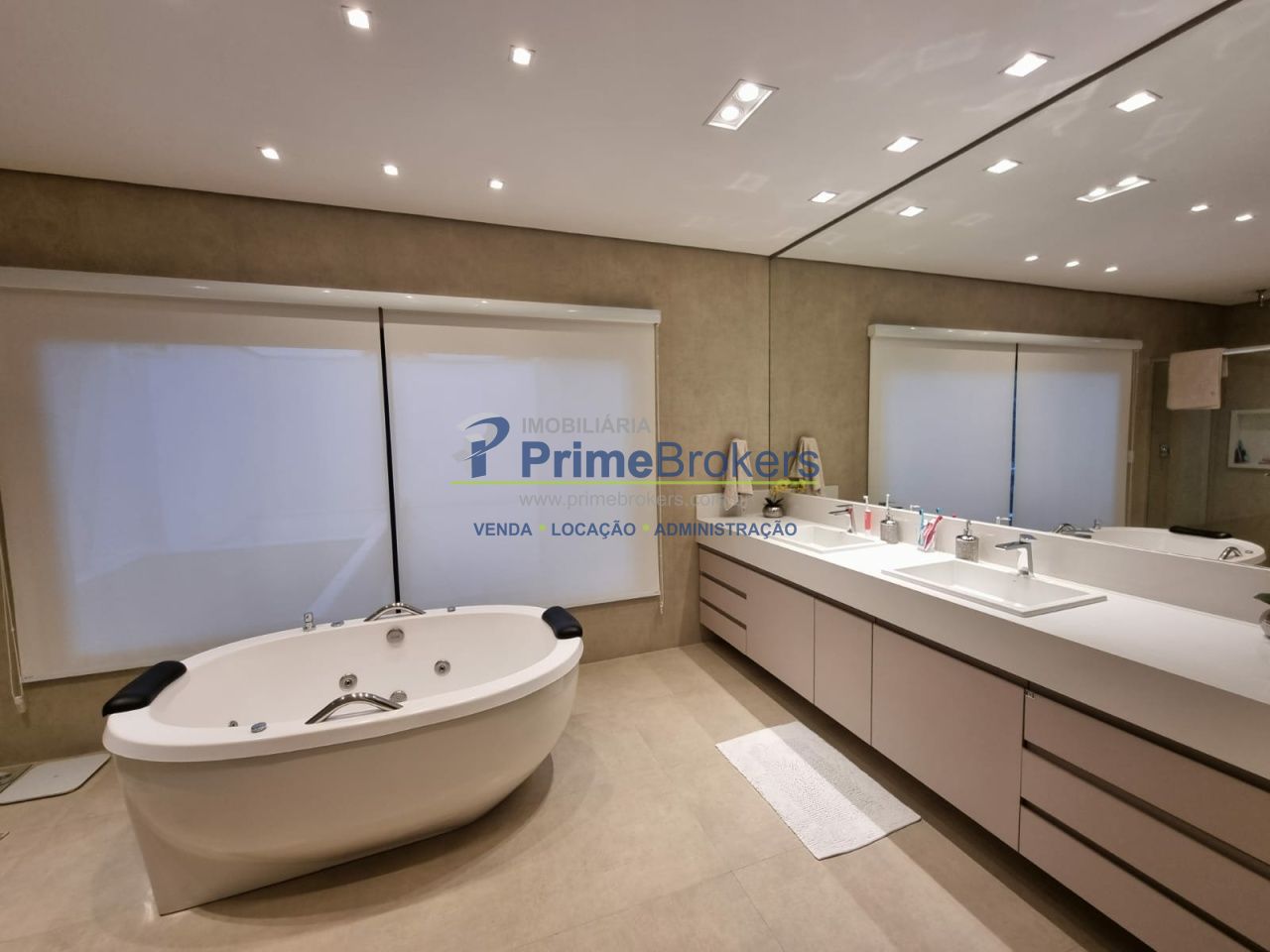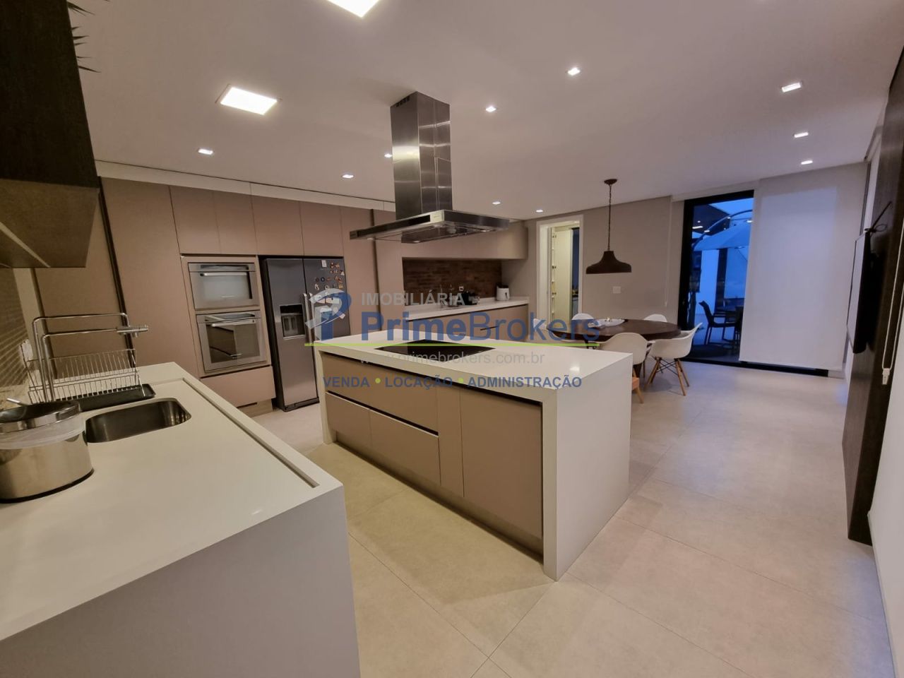 4 suítes (máster com walk in closet e hidromassagem), 4 vagas de garagem, cozinha gourmet planejada com acesso à piscina, living amplo, sala de jantar, ambientes iluminados e arejados