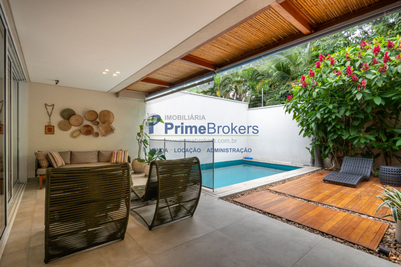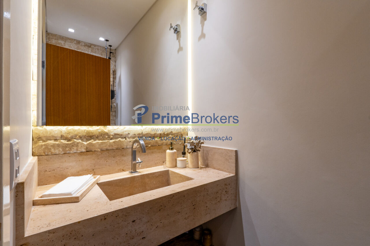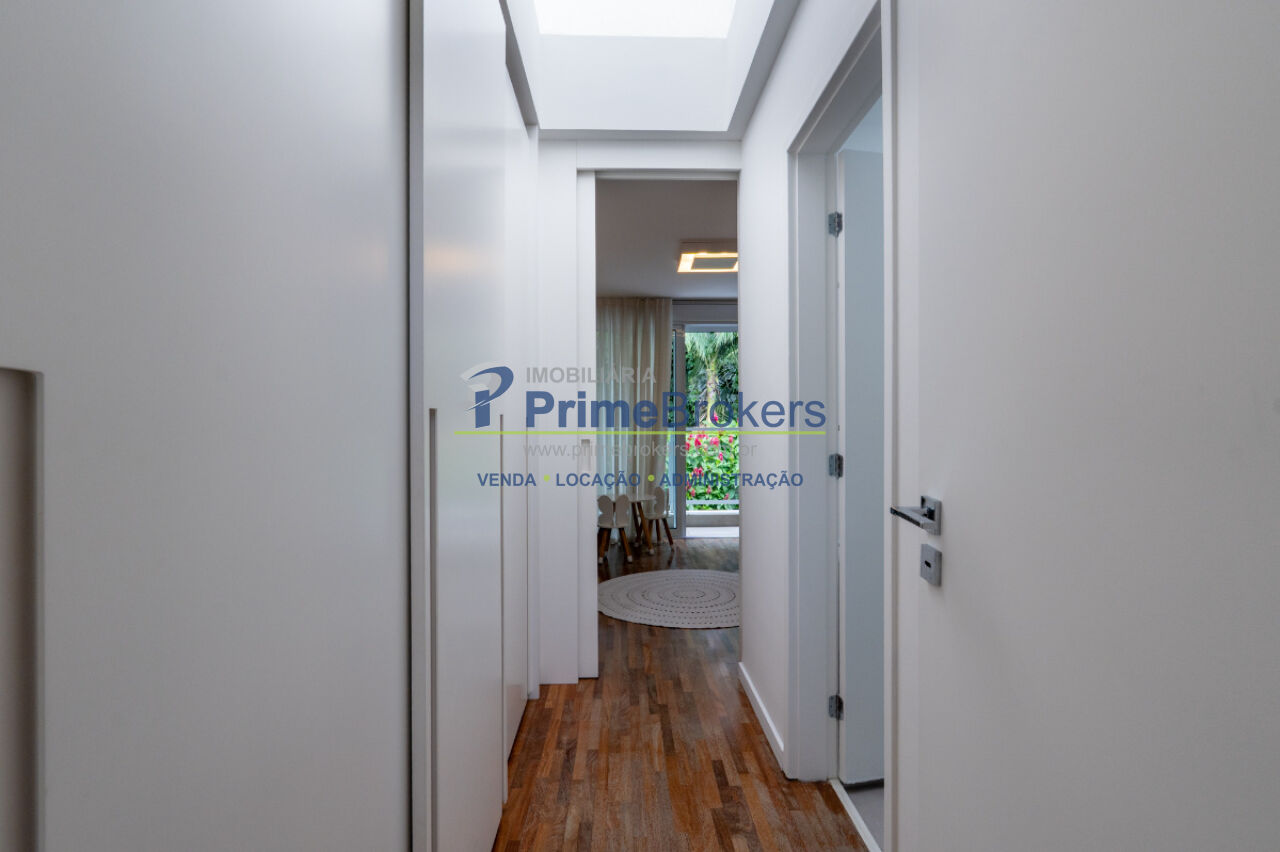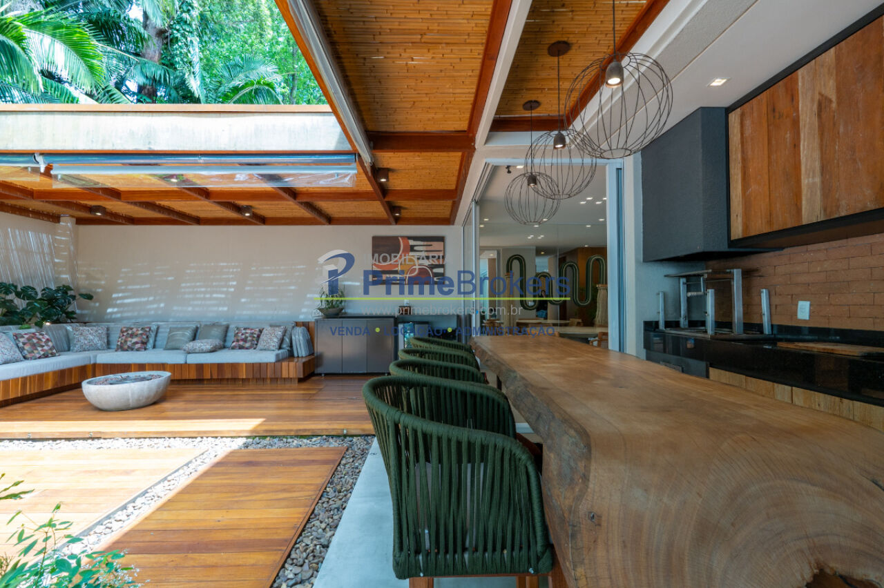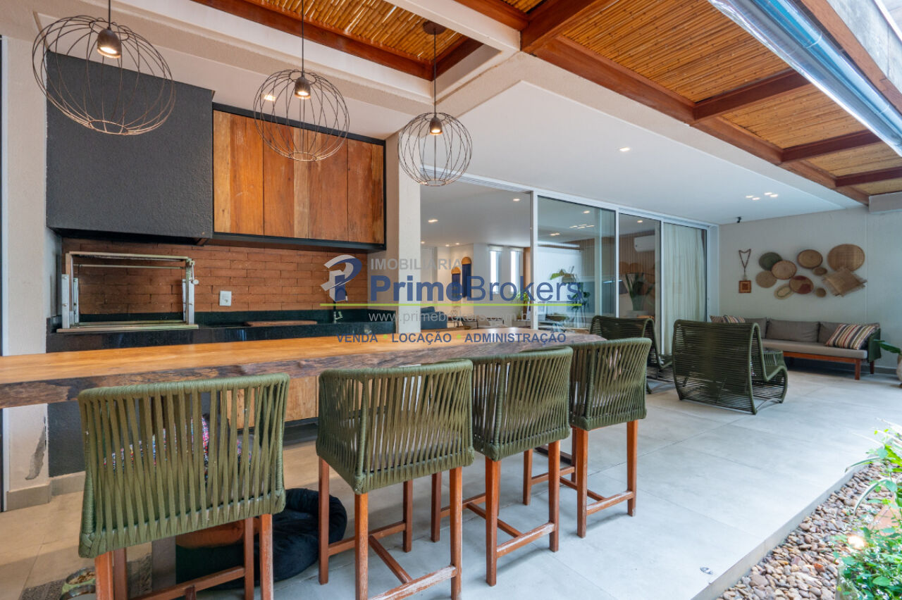 357m², 3 dormitórios, 3 suítes, 5 banheiros, 4 vagas, residência de arquitetura contemporânea com ambientes amplos e integrados, living fluido, cozinha aberta com acabamentos refinados, espaço gourmet elegante com churrasqueira, piscina privativa, suítes com piso de madeira e marcenaria sob medida da Novaes Ferreira, varandas privativas com vista para o verde, suíte máster com closet e banheira com bancada dupla, escritório com isolamento acústico no nível inferior, lavanderia funcional, 4 vagas de garagem livres.