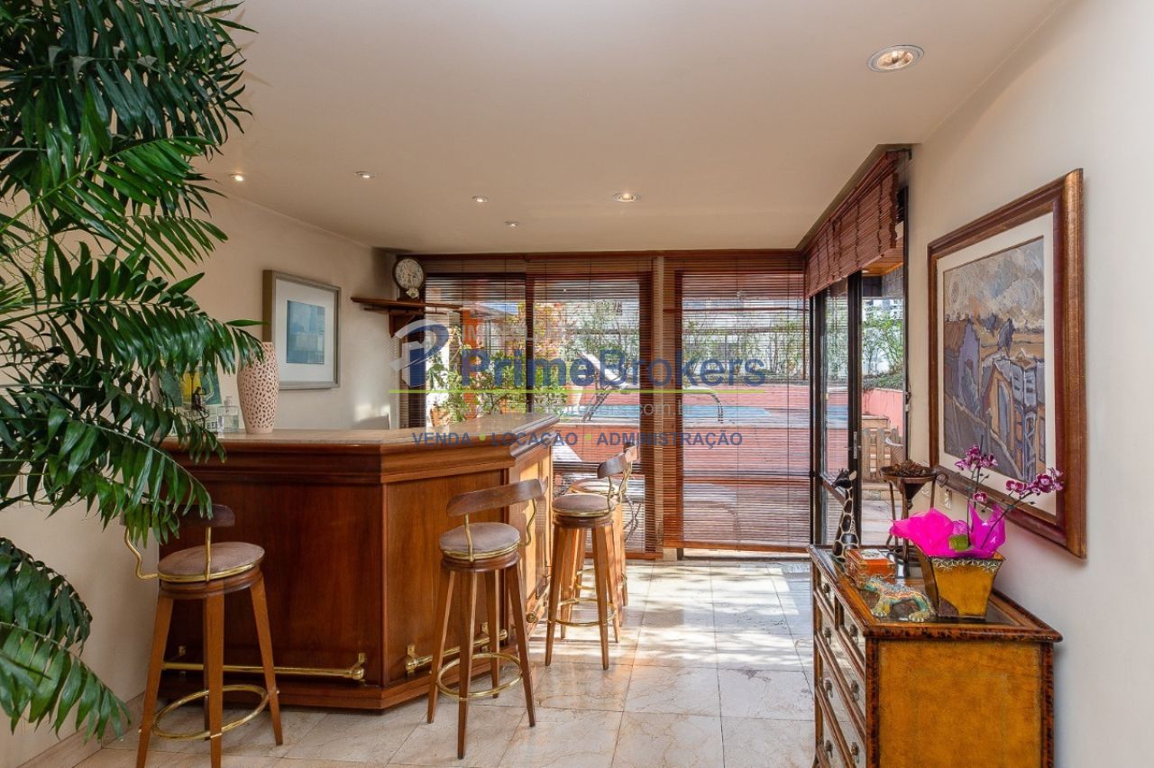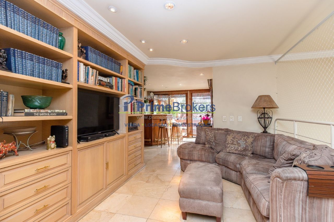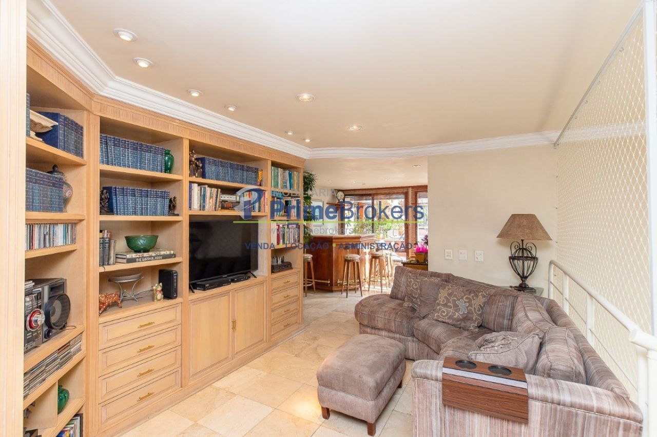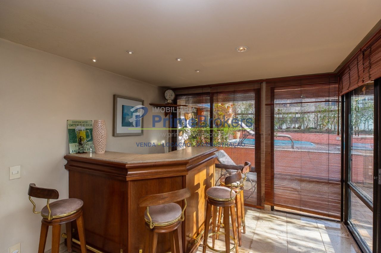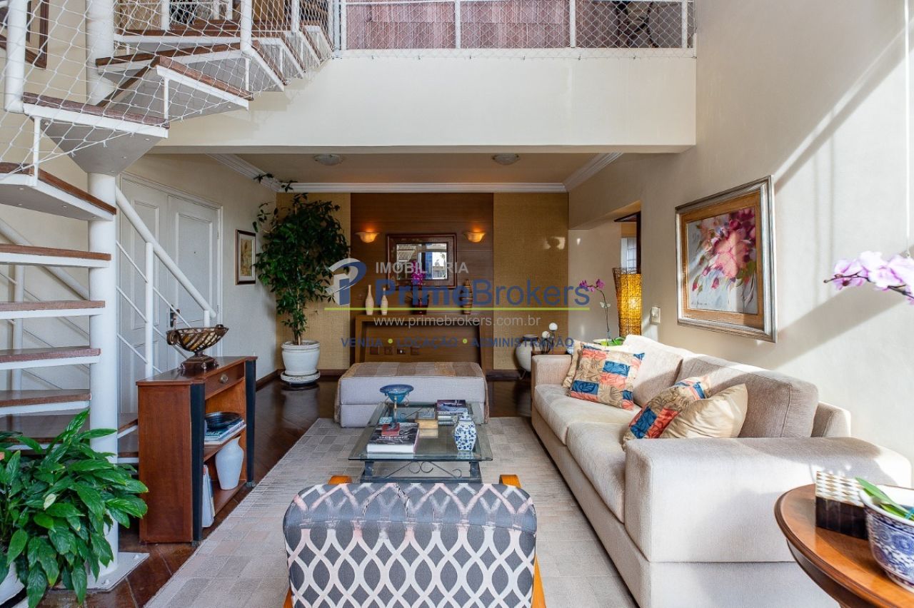 Cobertura excepcional de 297m² no Brooklin, pronta para você construir uma nova história. O ambiente principal impressiona com pé direito alto, muita luz e integração entre sala de estar, jantar e lareira. São 3 dormitórios com móveis planejados (2 suítes), ampla cozinha, área de serviços, lavabo e escritório. No andar superior, uma sala de TV com bar elegante. Destaque para a área de lazer privativa completa.