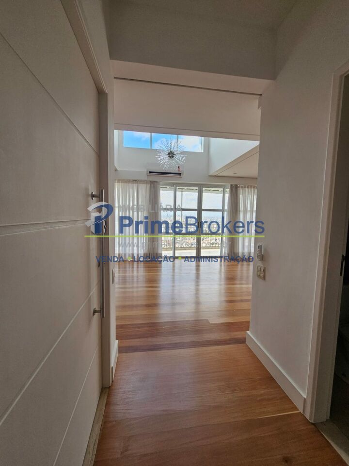 Cobertura dúplex, 300 metros de área útil, 4 suítes, sendo a suíte Master com closet e jacuzzi, escritório, cozinha integrada, sala para 3 ambientes com pé direito duplo,varanda gourmet, terraço lateral. Vista espetacular e linda iluminação natural.
