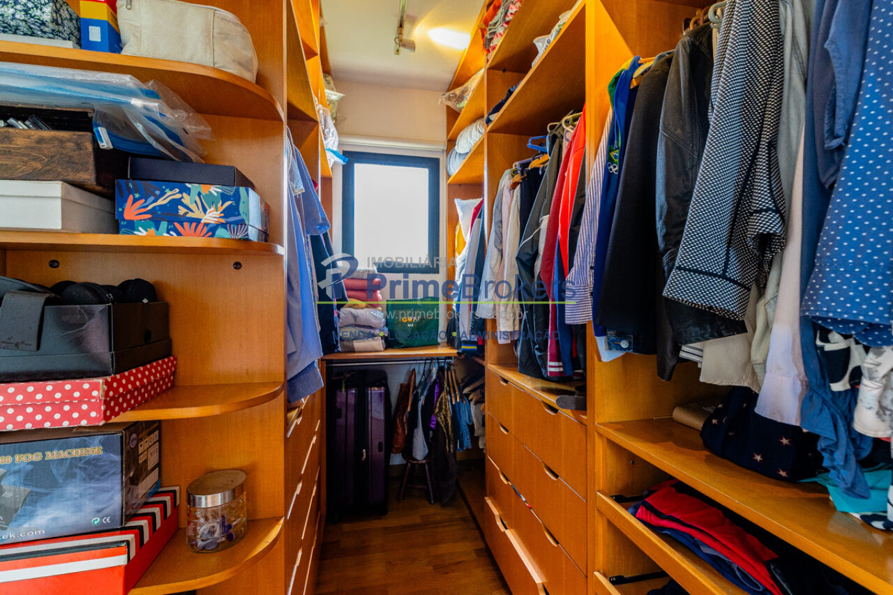 Piscina privativa, churrasqueira privativa, sauna seca, varanda com vista, piso de madeira, closet, móveis planejados, lavabo, área de serviço, água quente a gás, infraestrutura para ar-condicionado, home theater, interfone, dependência de funcionário