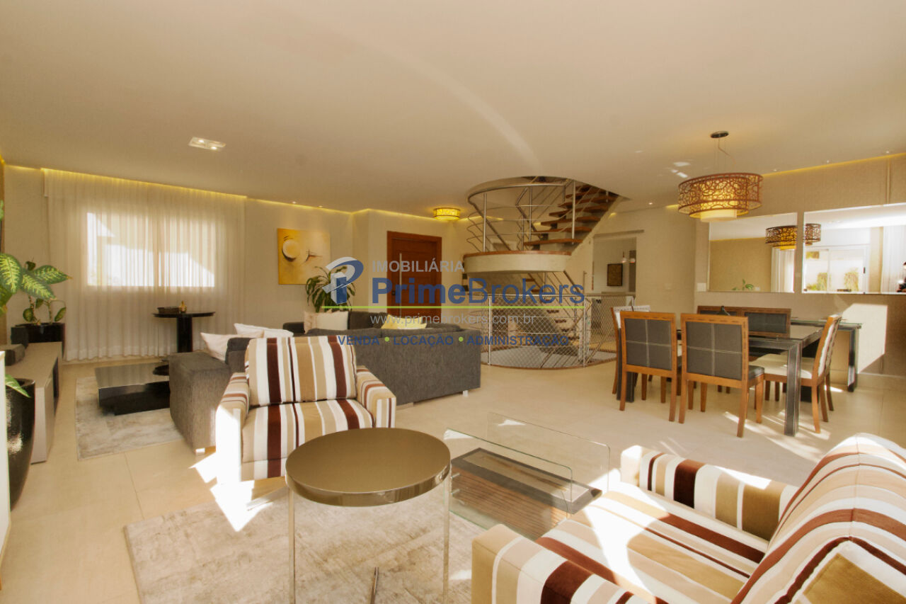 6 dormitórios (4 suítes + 2 quartos multiuso), totalmente mobiliado, ar-condicionado em todos os quartos, área gourmet com churrasqueira, preparação completa para jacuzzi (laje reforçada, encanamento, elétrica), 3 caixas d'água, garagem fechada com 6 vagas e depósito, isolamento acústico no quarto inferior, closet, copa, janelas teto-chão