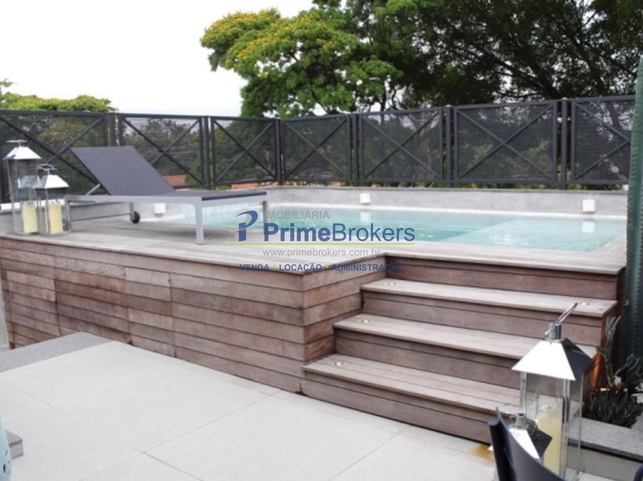 Andar superior com lazer e vista única e arborizada, piscina aquecida com hidromassagem, deck de madeira, churrasqueira, banheiro e ducha. Armários com fogão, lavabo, sala de estar externa com vidros.