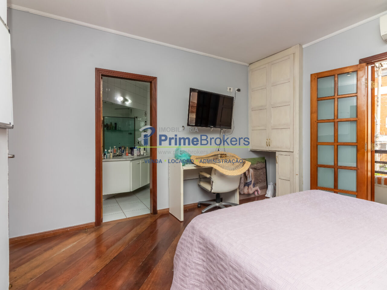 220m², 4 dormitórios sendo 4 suítes climatizadas, 3 vagas de garagem, piscina, churrasqueira, lareira, closet, móveis planejados, piso de madeira, sacada, lavabo, área de serviço, gás encanado, ar condicionado central