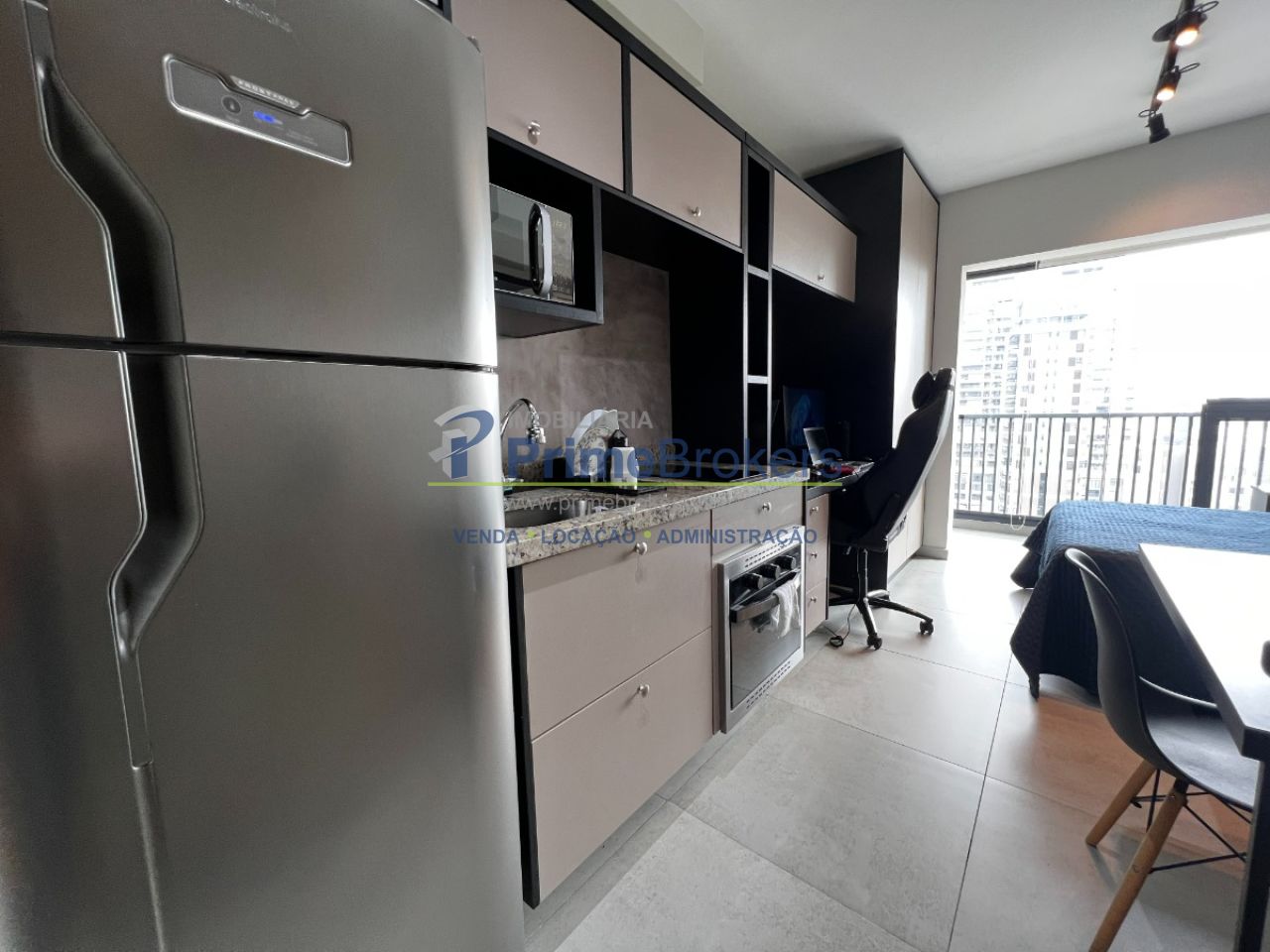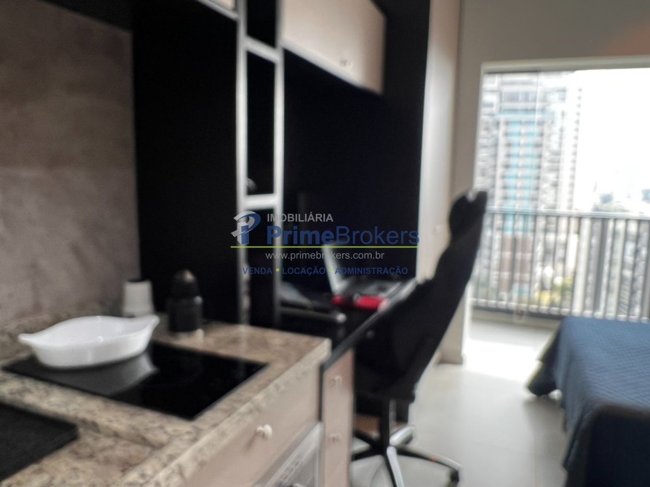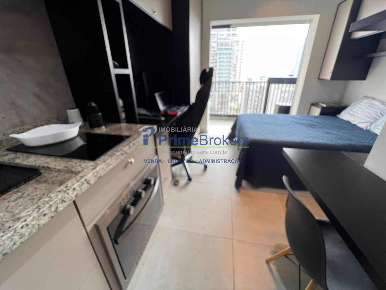 22m² com layout inteligente, 1 dormitório integrado, cozinha compacta, mini escritório, 1 banheiro moderno, sem vaga de garagem