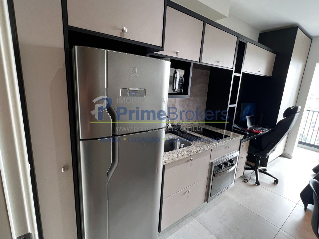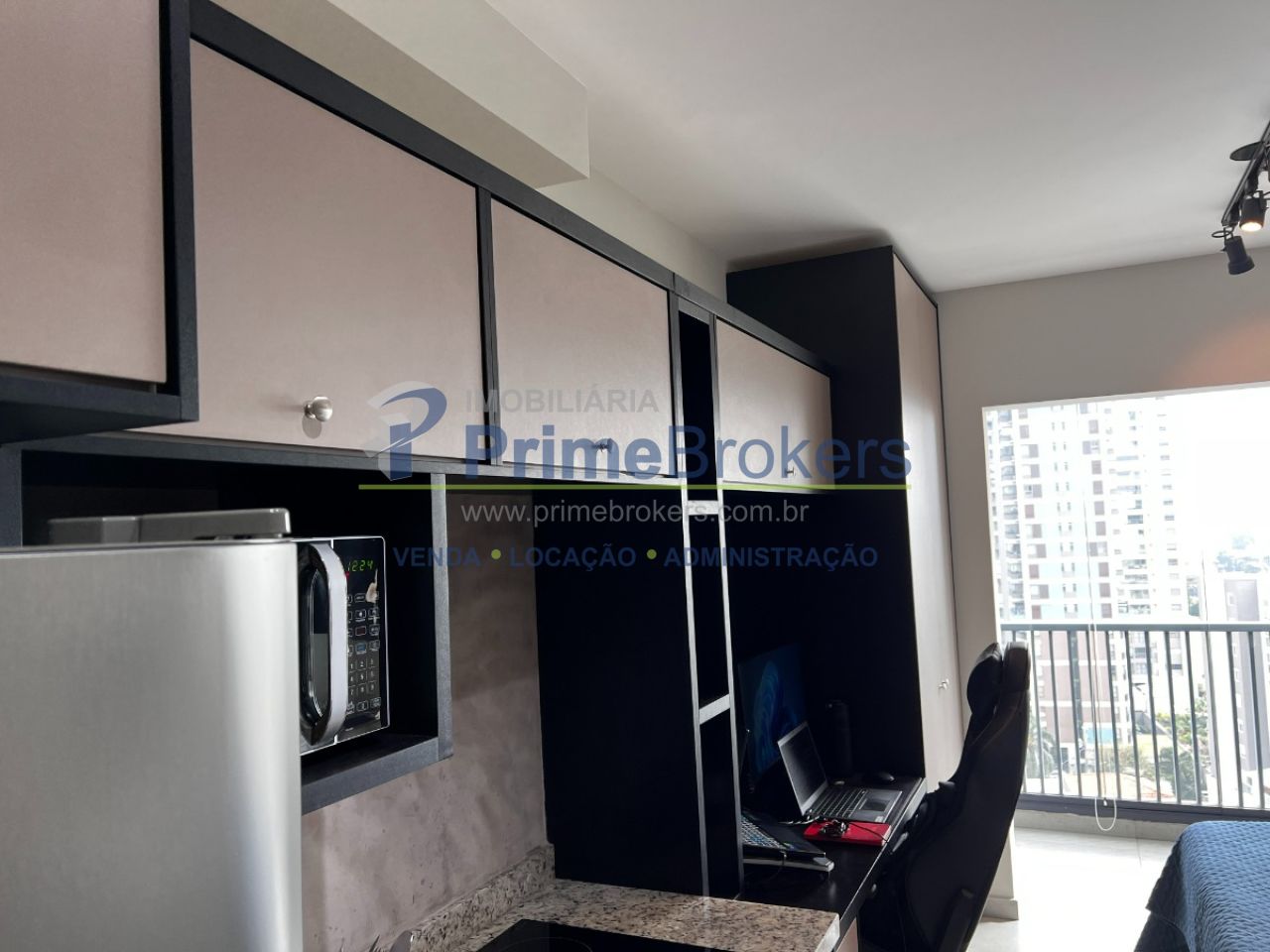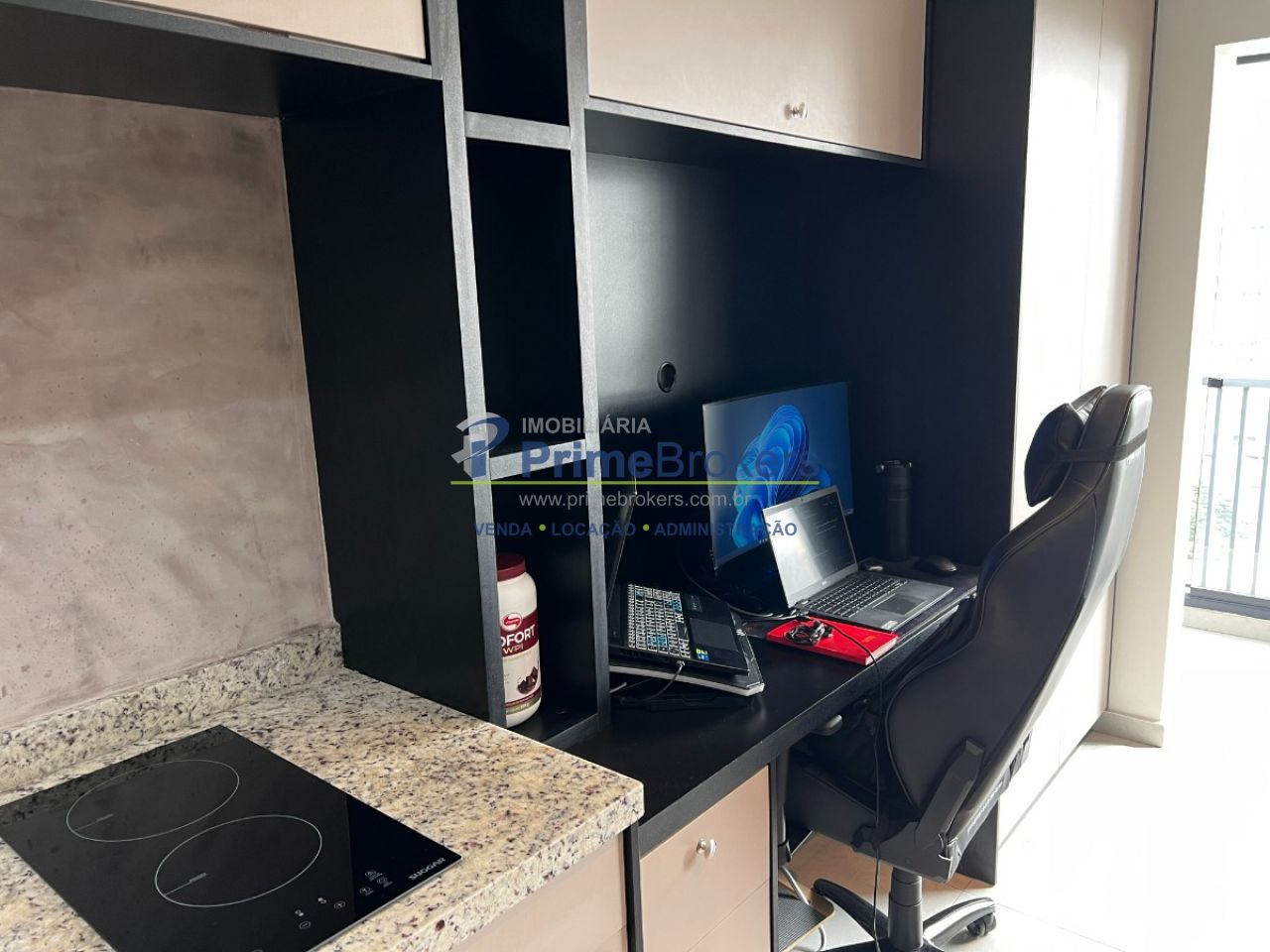 22m² com layout inteligente, 1 dormitório integrado, cozinha compacta, mini escritório, 1 banheiro moderno, sem vaga de garagem