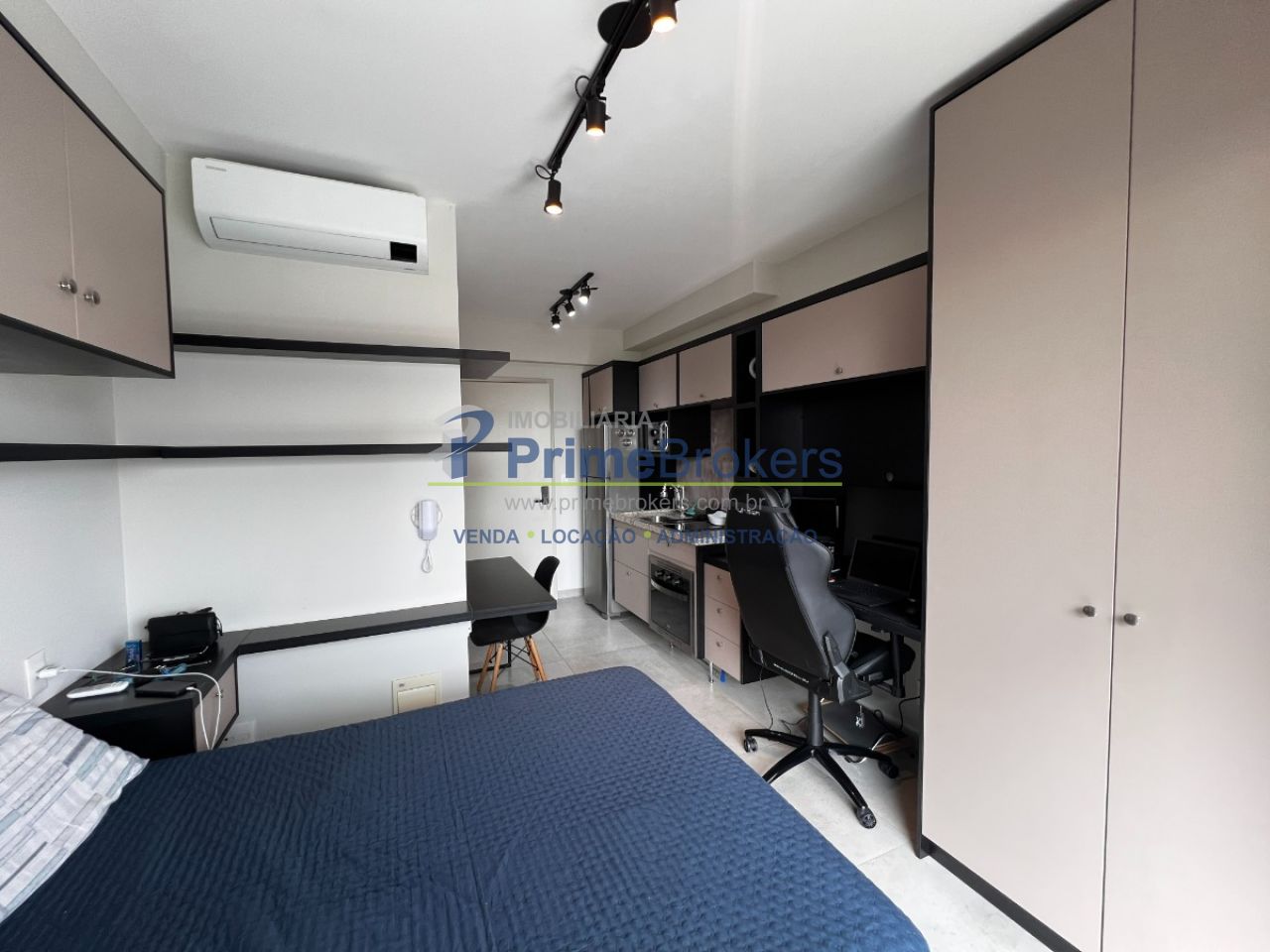 Este moderno studio de 22m² no Brooklin oferece um layout inteligente que integra perfeitamente o dormitório, a cozinha e um mini escritório em um único ambiente, ideal para quem busca praticidade e conforto. O banheiro moderno complementa o imóvel, que dispensa vaga de garagem, proporcionando mais economia e liberdade para um estilo de vida dinâmico.