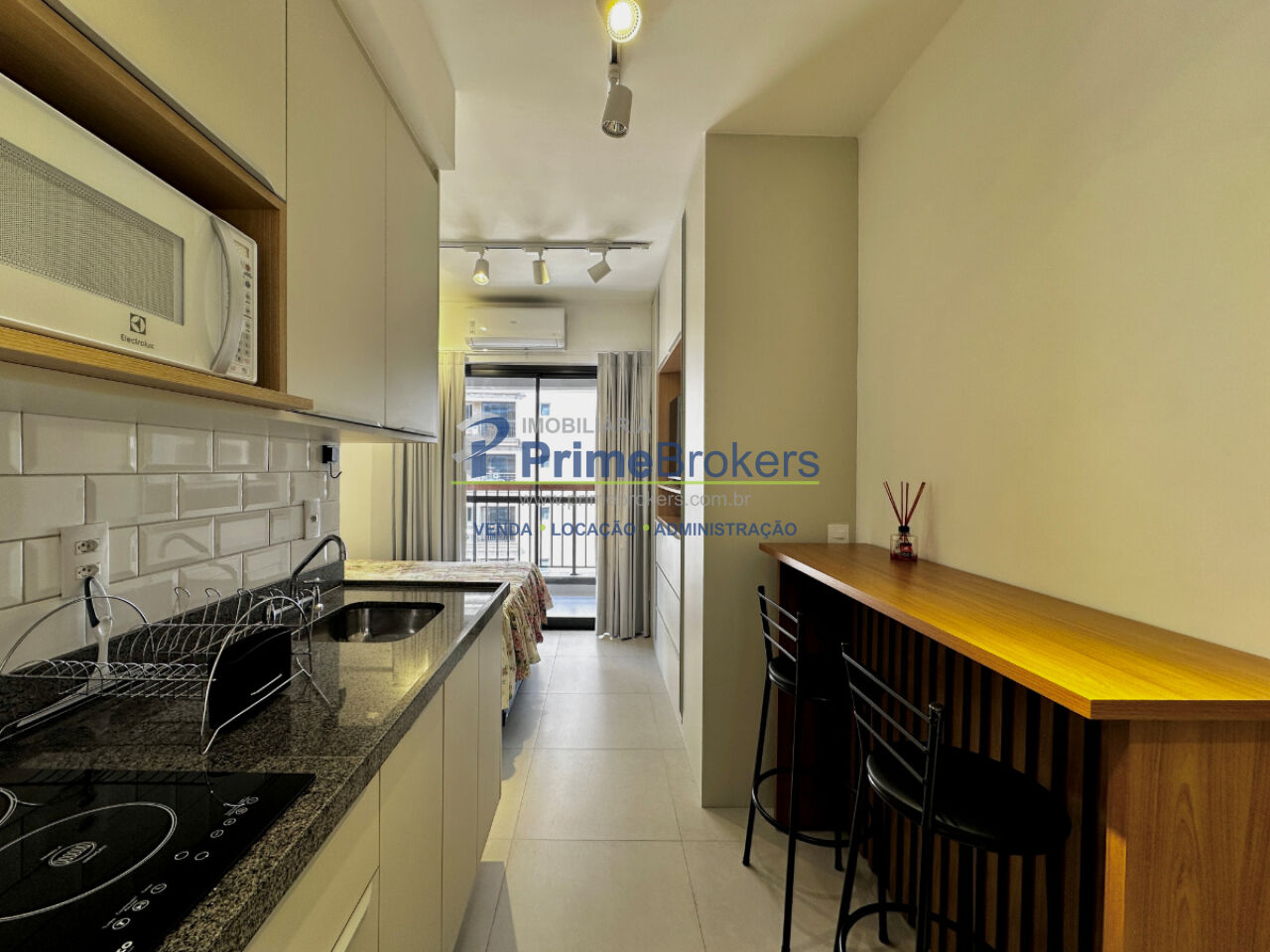 Studio moderno e mobiliado, com 25m², localizado a poucos passos do Metrô Brooklin. O imóvel conta com cozinha integrada, móveis planejados, sacada e vista livre para a cidade, garantindo excelente iluminação natural. O chuveiro a gás e a ventilação natural no banheiro proporcionam conforto térmico e eficiência. Unidade com acessibilidade, interfone e gás encanado, pronta para morar.