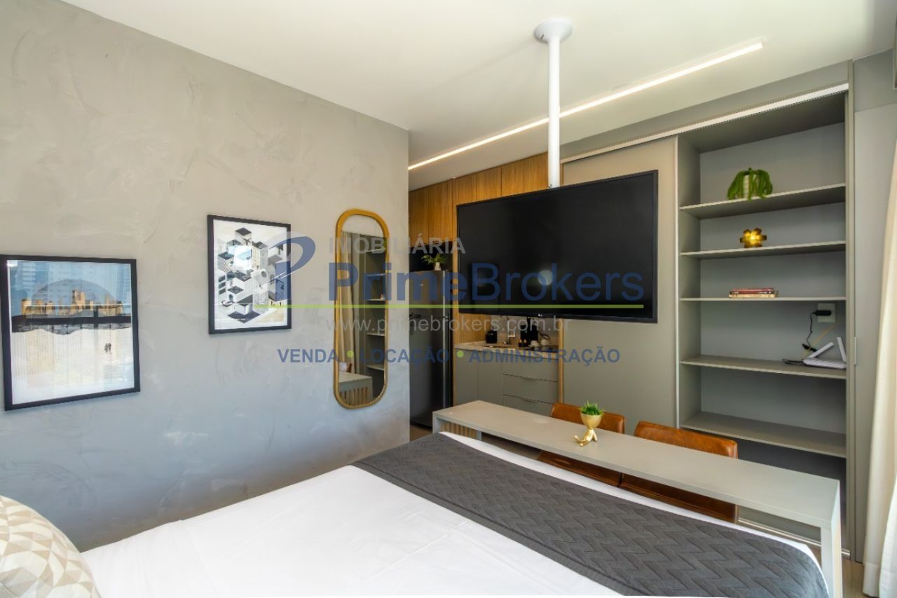 Studio com 25 m² de área útil , sala , cozinha planejada , 1 quarto sendo 1 suíte,