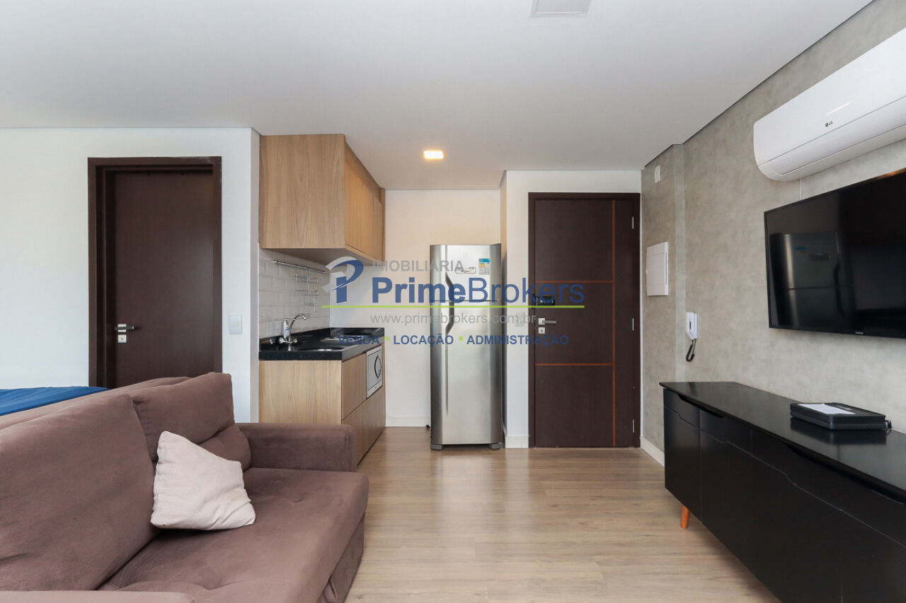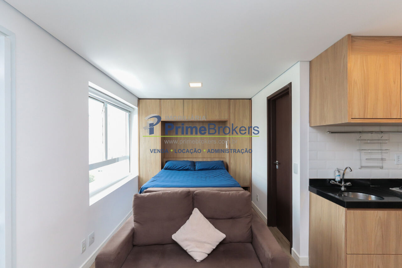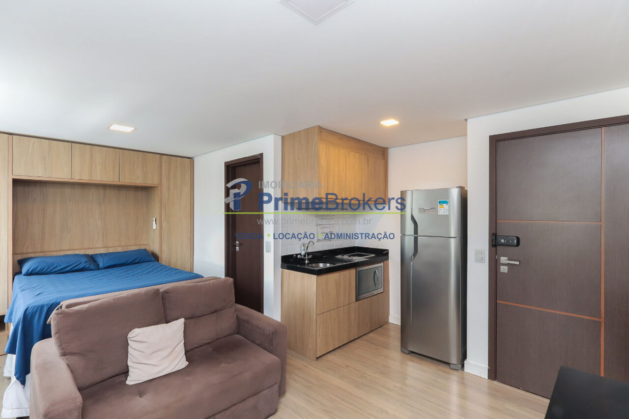 29m², Studio Mobiliado, Móveis planejados, Sacada, Janela piso-teto, Suíte, Gás encanado, Vista para cidade
