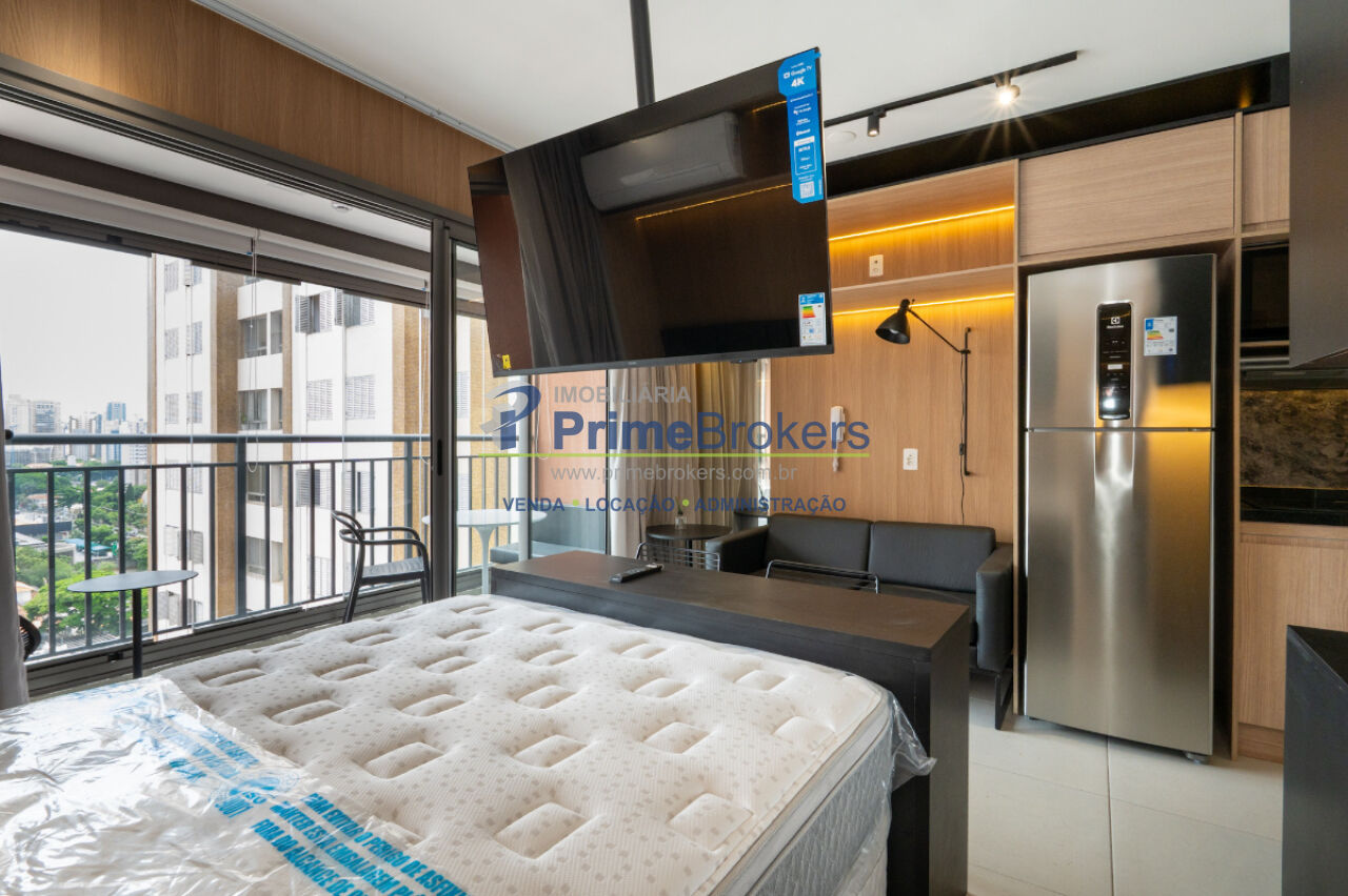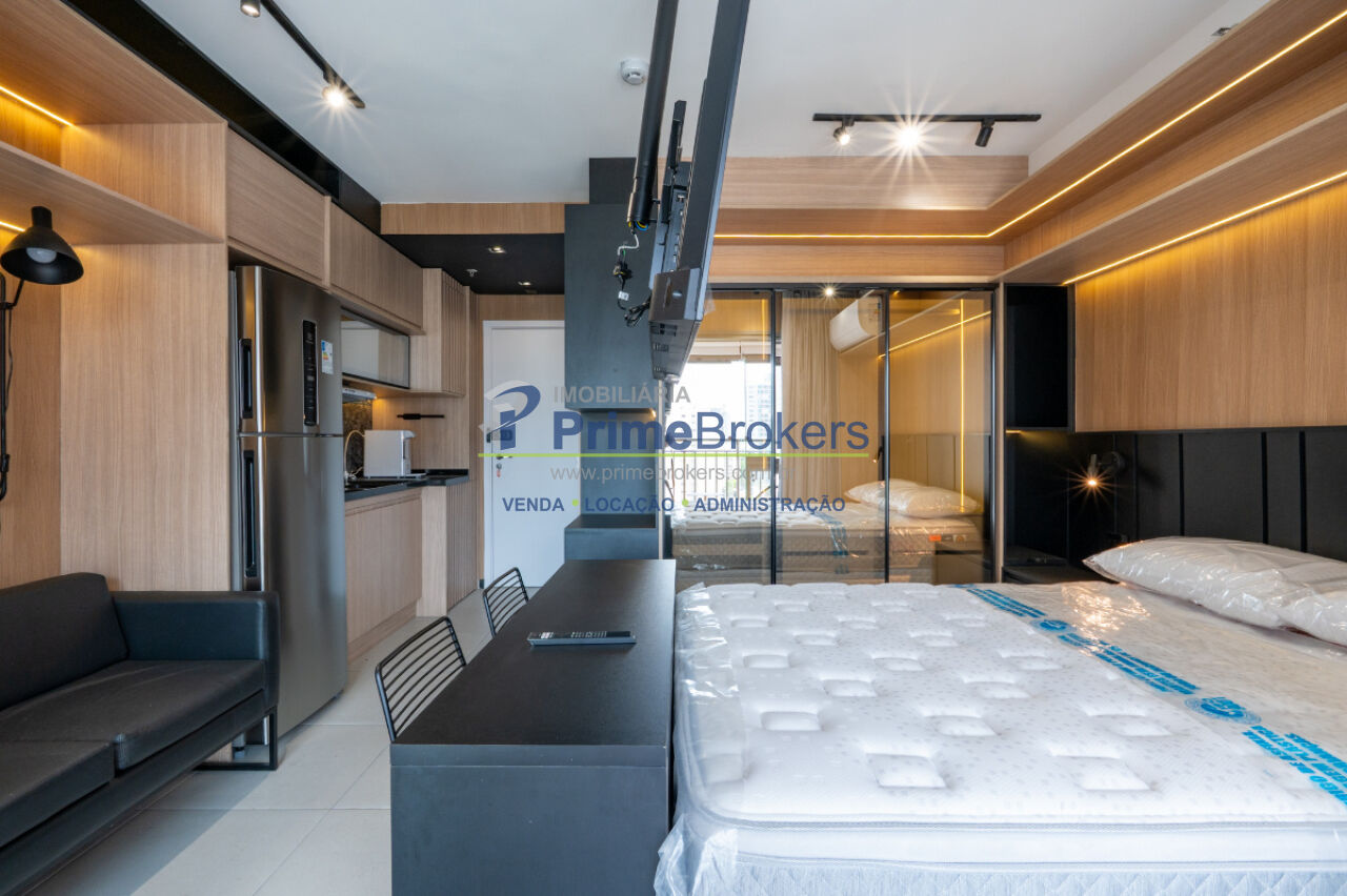 Procurando o investimento perfeito ou seu primeiro imóvel na Zona Sul? Este Studio de 27m² na Avenida Santo Amaro é a união ideal entre sofisticação e praticidade. Totalmente mobiliado e pronto para morar ou rentabilizar, foi projetado para maximizar o espaço e a iluminação. O apartamento oferece cama box, ar-condicionado, armários embutidos de alta qualidade e eletrodomésticos inclusos (geladeira, cooktop, micro-ondas e máquina lava e seca), além de uma varanda envidraçada.