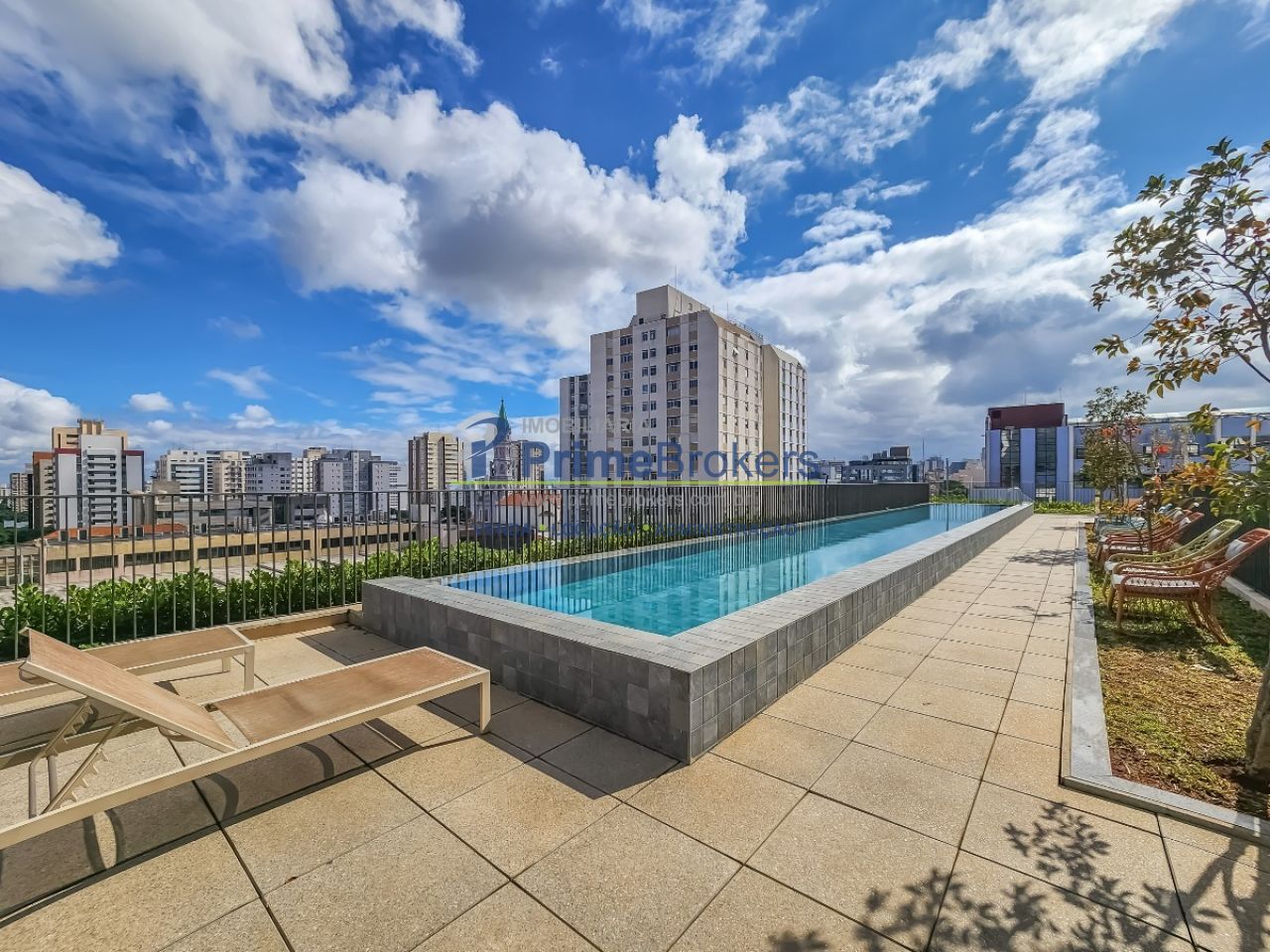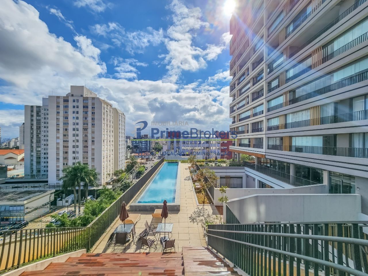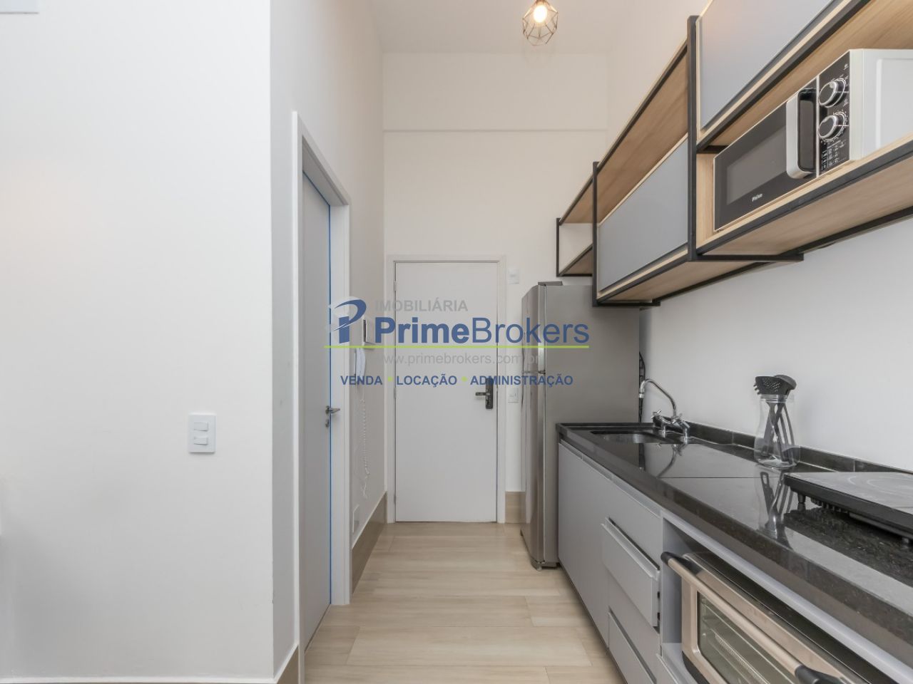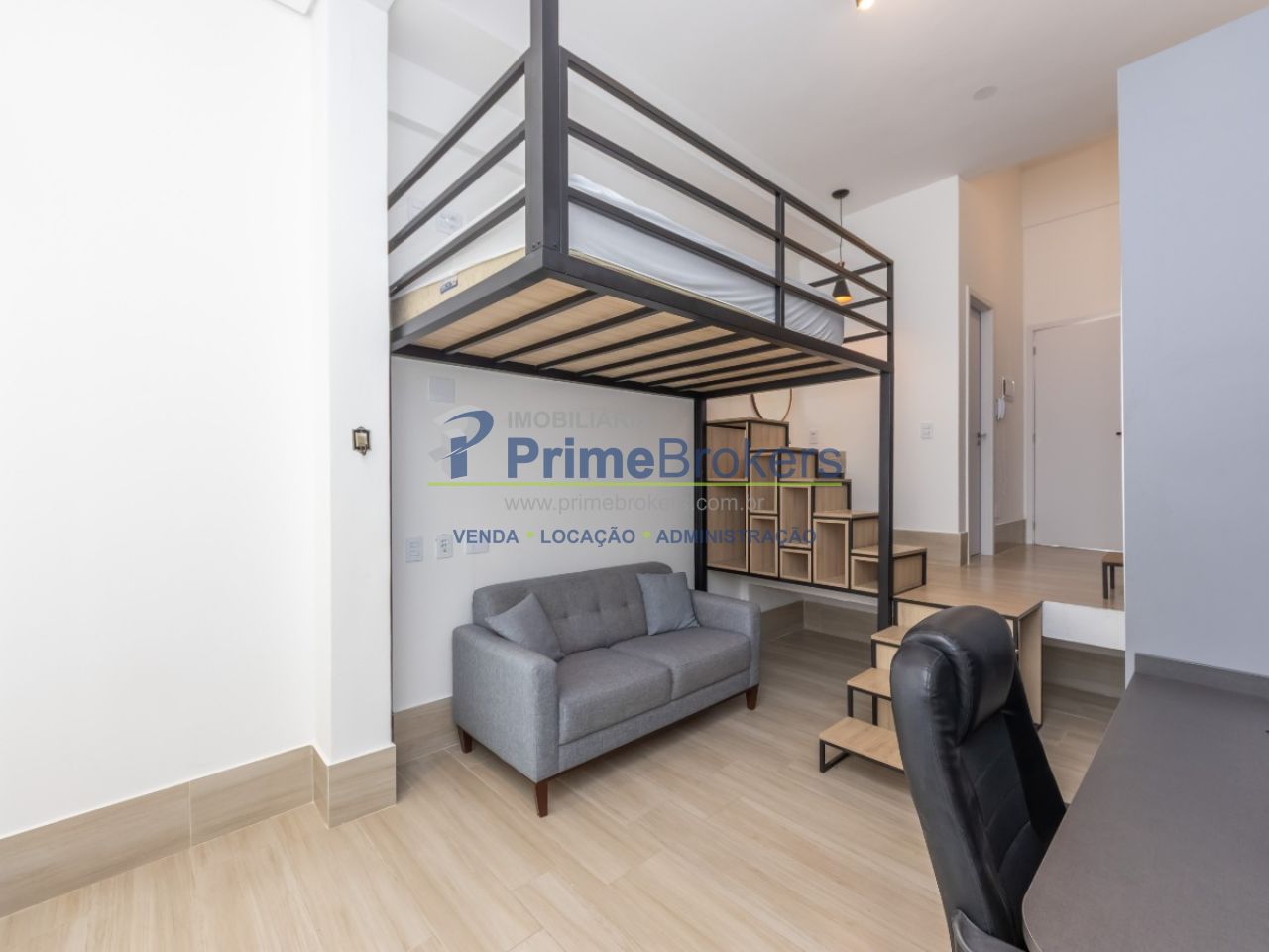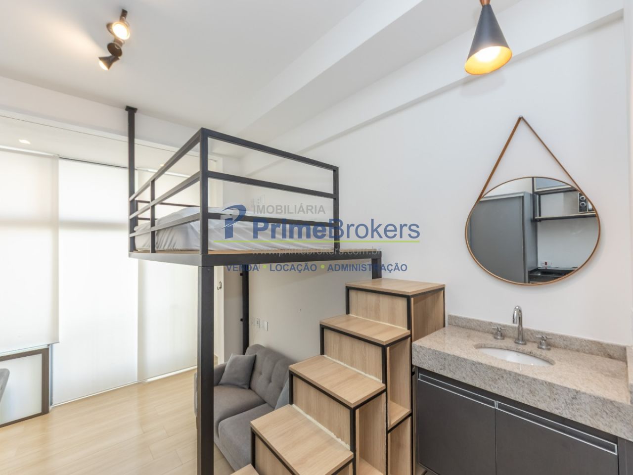 Studio de 25m² com pé direito de mais de 4m de altura, possibilitando cama suspensa ou mezanino completo. Condomínio novo, recém-entregue, com portaria 24h independente. O imóvel é 100% mobiliado, com ar-condicionado, armários planejados e faz parte de um complexo com amplo lazer.