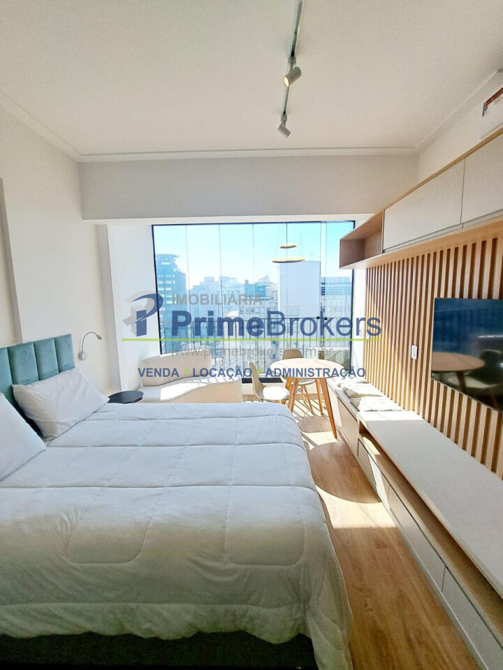 Studio com boa ventilação e luminosidade. Possui: living com varanda integrado a cozinha. Não há vaga de garagem.